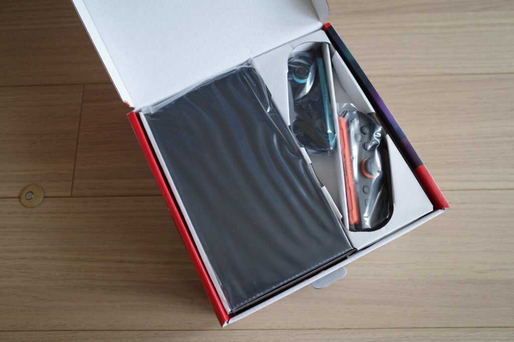 外箱を開けると本体とジョイコンが入っていました。