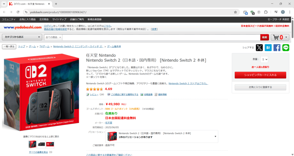 2025年6月5日に発売されたNintendo Switch 2ですが、日本語・国内専用版を発売するなど日本国内での普及に努力しているのですが、人気があってなかなか日本国内では買えない状況が続いてますよね。この状況が変わってきているのか、ようやくSwitch 2を買うことができたのでレビューしたいと思います。